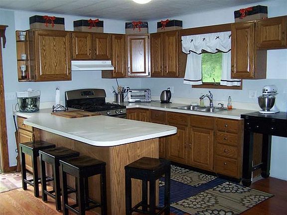 Once you start up the driveway, you feel like you are in your own little paradise on 10 acres. This home has 3 bedrooms, 1.5 bath, large 3-season front porch, and side deck. Hardwood flooring, ceramic tile, Buderus OHW boiler, wood stove and new dishwasher and refrigerator and with oak cabinets in the open kitchen. Large 2 car garage with tons of attic storage and a lean to. Two other outbuildings with electricity. One is being used as a chicken coop.
