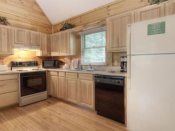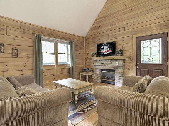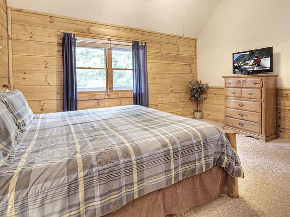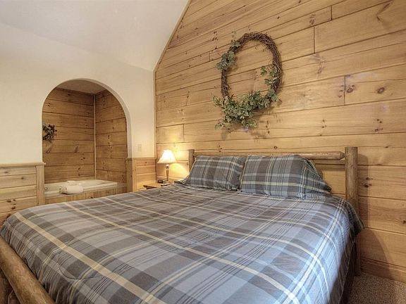 As cute as a button!!! Oh my goodness, if you are looking for a cozy or romantic retreat, this is for you. "TreeTops" is set back in the Eagles Ridge Resort and has a wonderful front porch and a wonderful second deck with the hot tub and gas grill. The inside boasts an open floor plan with a sleeper sofa, full kitchen and flat screen t.v. The master bedroom is very spacious with a full bathroom and separate whirlpool tub. Don't let the square footage fool you, you don't wan to pass this cabin up. Has a good rental history.