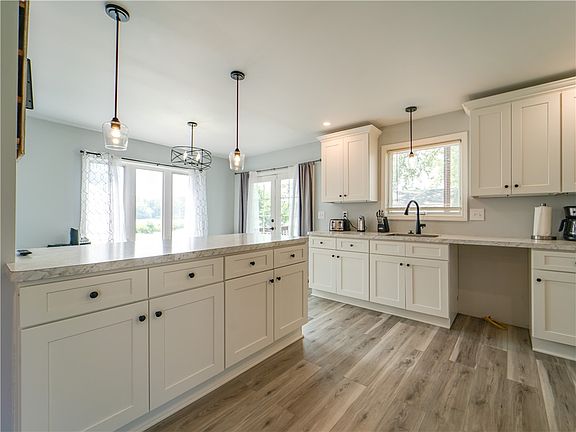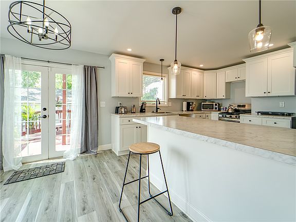 This stunning 3-bdrm, 2½ bath Colonial home offers a truly picturesque living experience w/beautiful lake views from the idyllic location on Round Pond. The interior of the home has been completely updated, featuring new flooring & an open floor plan that creates a spacious & inviting living space. The large living room, dining area & kitchen flow seamlessly together, providing the perfect setting for family gatherings & entertaining. Recessed lighting throughout adds a touch of modernity. Kitchen is equipped w/pendant lighting, lots of cabinets & a breakfast bar, offering both functionality & style. Main level is completed w/a convenient powder room. Upstairs, the main bdrm incl. an upper deck, where you can enjoy the breathtaking lake views & unwind in tranquility. Main bath has been totally remodeled, boasting a custom-tiled shower, adding a touch of luxury to the home. 2 addtl bdrms & another bath complete upper level. Outside the home continues to impress w/a great deck overlooking the water, an ideal outdoor space to savor the natural beauty of the surroundings. Property also includes a detached garage & nice private yard. Great fishing spot! Delayed negotiations 8/15 12pm