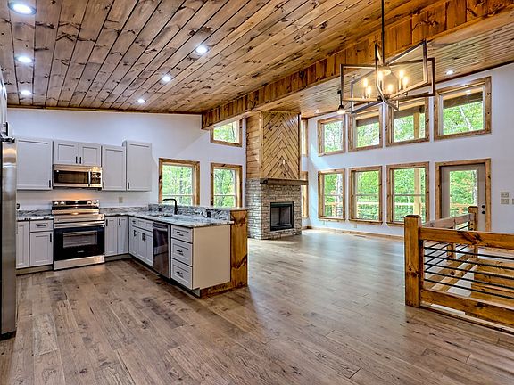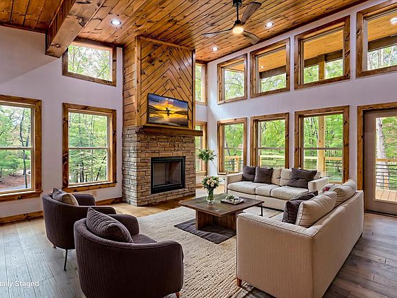 Modern Mountain Style Meets Natural Seclusion. Tucked into a peaceful wooded setting, this 3-bedroom, 2.5-bath modern mountain-style home offers the best of both worlds—stylish living spaces and a serene, nature-filled backdrop. From the moment you arrive, the private drive and natural landscape set the stage for a retreat that feels miles away, yet close to everything you need. Inside, you'll find a thoughtful open layout that balances warmth and sophistication. Expansive windows invite natural light and frame wooded views, while wood and stone details echo the beauty of the outdoors. The spacious great room centers around a cozy indoor fireplace, perfect for cool mountain evenings. The kitchen and dining area flow seamlessly for easy entertaining, and the bedrooms provide peaceful retreats, including a relaxing owner's suite. Step outside and the living space expands—an outdoor fireplace creates the ultimate gathering spot under the stars, whether you're hosting friends or enjoying quiet nights by the fire. With wooded privacy all around, it's the ideal place to slow down and reconnect with nature. Practical features make everyday living easy: Private well for reliability and independence. Carport for covered parking and convenience. 3 bedrooms, 2.5 baths for comfortable family or guest accommodations. Two fireplaces (indoor + outdoor) to enjoy year-round. Whether you're looking for a full-time residence or a private mountain retreat, this home is move-in ready and designed to embrace a relaxing lifestyle.