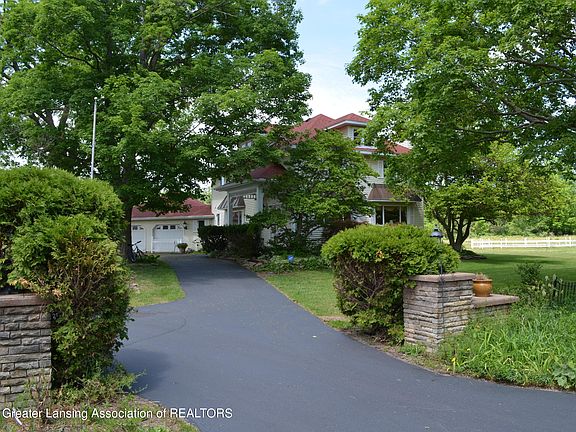 Historic Victorian home with 7.68 gorgeous acres in Holt School District is awaiting its new owner after creating 35yrs of wonderful memories for the current owner. This home was lovingly restored in the early 80's and has been a family horse farm since. Whether the new owner is an equestrian or is simply seeking their own private estate to create their slice of heaven, this property offers endless opportunities for family, home based business, hunting, more. Just beyond the 540 acre Burchfield Park, this 2 story four bedroom and two bath home has over 2300 sf of living area. The second level primary bedroom with private full bath has quartz counters and marble floors plus overlooks the back pastures. An additional 3 bedrooms and second full bath complete the second level. A Full staircase to the 3rd floor unfinished walk-in attic is perfect for a future playroom or fabulous guest suite! Main floor has large living room with gas fireplace, separate dining room off kitchen .