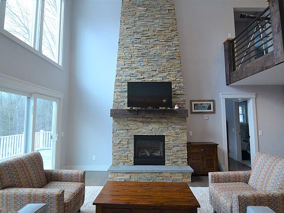 With 16 acres and views of Okemo, this recently rebuilt house is sure to please. Only 6 miles to Okemo, this house boasts 4 bedrooms, three and half baths and an open living/dining/kitchen area. Featuring cathedral ceilings with a floor-to-ceiling stone fireplace and incredible sunsets through large thermal windows. Tastefully designed with high-end touches, including granite in the kitchen complimented by stainless appliances and custom cabinetry. Main level master suite with additional guest suites on upper and lower levels. Hardwood floors with radiant heat on all three levels, will keep your feet toasty warm all winter! A large, timber staircase shows off the artistry and custom design. Just as much thought was put into the carefree exterior... A clever covered pass -through for snowmobiles, as the VAST network of trails is just up the road. A two-car garage is waiting to protect your cars and toys. The large wrap-around covered porches can be used year round especially while watching guests utilize the hot tub, large surrounding deck or the perfect sledding hill behind the house! Minutes from trophy fishing, hiking, golfing, skiing, snowmobiling, water sports and more! (Basically a new house was built where an older house resided. Everything is new, electric, plumbing, framing, siding windows, roof, doors and more!)