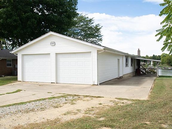 Lakefront home in Lakengren! 3 bedroom 2 bath home on over half an acre! Beautiful deep covered deck looks out over the lake. Deep 2 car garage. Full unfinished walkout basement leads to covered stamp concrete patio. Basement offers lots of options for adding to the square footage! Yard gently slopes to nice dock & lakeside deck for relaxing and enjoying the view.