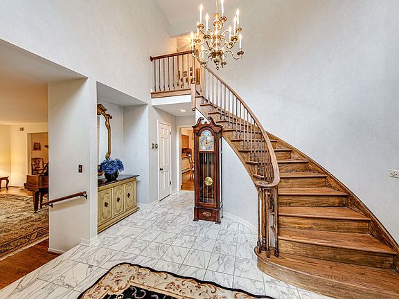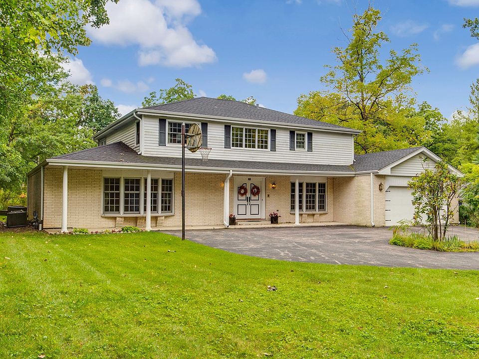 This lovely custom built home in desirable Whispering Oaks features 4 bedrooms, 2 full and 2 half baths with a first floor all season sun room and laundry room. Newer roof and windows! All room sizes are generous with hardwood or stone flooring throughout this 3,904 above grade square foot home. The kitchen is open to the family room, which has a built-in wet bar, curved stone fireplace and built-in vented grill. The large living room is adjacent to the dining room, and the sun room off the family room provides abundant natural light throughout the year. Upstairs, the primary suite features a large walk-in closet, dressing room and bath. The other two bedrooms are also spacious and share the large hall bath. This is a fabulous home for entertaining and with over 1,900 sf in the lower level, there is plenty of room to expand. The grounds are beautiful and include a circular drive, front porch, inviting back patio and professionally landscaped grounds. Enjoy living in a home that is close to town, train, parks and schools.