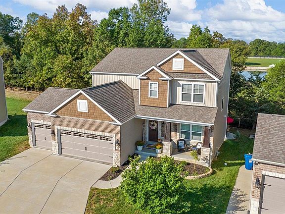 Welcome home, to this darling well maintained home with a gorgeous wood lot with a water view! Did I mention, Wentzville Schools? The main level is very spacious with 9ft ceilings,  engineered hardwood floors, dining room, living room w/wood burning fireplace, MF laundry w/new cabinets, half-bath, bedroom/office and mudroom with built in custom shelving. The chef in the house will love the grand kitchen, granite counter tops, stone built arch above the cooktop, SS appliances, center island, walk-in pantry and loads of cabinet and countertop space! The refrigerator and the washer and dryer stay! The upper level has 4 more very spacious bedrooms and a loft.  The master suite, has a large walk-in closet w/new custom shelving and new LVP flooring. The master bath has separate tub and shower and half wall blocking the commode. Step out to the no maintenance deck and enjoy your view of the trees and the water! Additional Rooms: Mud Room