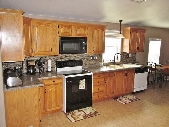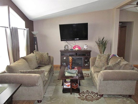 Check out this gorgeous home! Built in 2001, this Medallion Manufactured home has 3 bedrooms and 3 baths. Well lit with a skylight, the open kitchen/dining area offers beautiful cabinetry, has eat in counter and room for breakfast table and includes appliances. Formal dining area has French doors leading to enclosed (non-heated) finished sunroom, perfect for summertime relaxing and no mosquitoes! Master bedroom has French doors, jacuzzi tub and large glass enclosed walk-in shower. Laundry room has lots of cabinet storage and includes washer and dryer. Double attached garage is finished and has floor heat and drain as well as a half bath. Exterior has large lot with spacious concrete patio, perfect for large gatherings and includes 2 sheds and covered gazebo. Perfect one level home in a great location and just east of the High School. Come take a look!