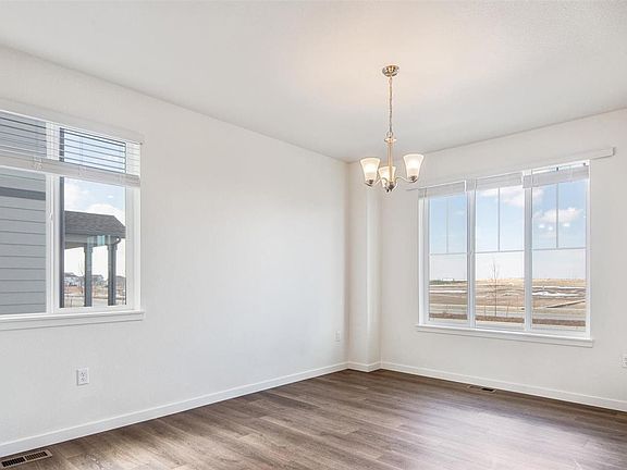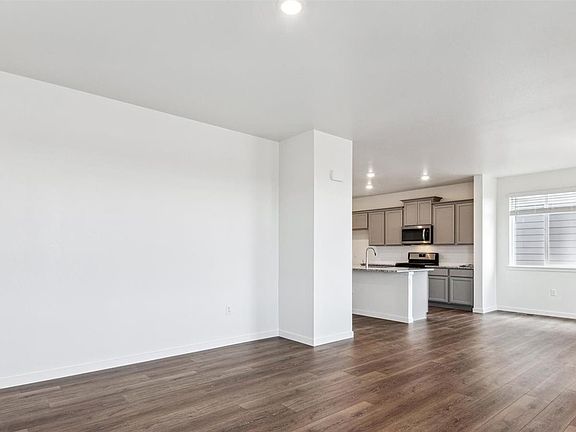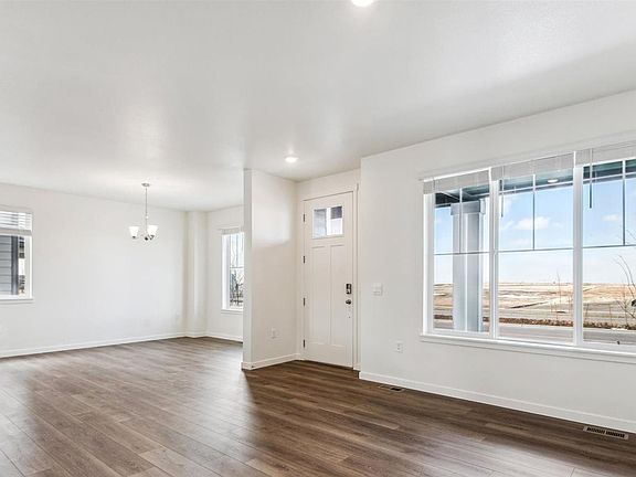 This Elbert home is our largest floorplan offering 4 Bedrooms, 2.5 Bath, and generous 2 car garage. Features an open floor plan with expansive 9 ft. ceilings on the main floor, dining room, pantry, and gas stainless steel range. Includes beautiful interior finishes such as vinyl plank flooring on the whole main floor and wet areas, upgraded carpet upstairs, quartz counters throughout and, rich brown cabinets. We offer an extensive list of included features in our homes such as 8' front door, 2 panel interior doors, A/C, tankless water heater, 8' tall garage doors with smart openers, smart thermostat, smart lighting and more. Horizon Uptown offers a large central park, trails, tennis courts and a dog park. ***Estimated Delivery Date: April. Photos are representative and not of actual property***