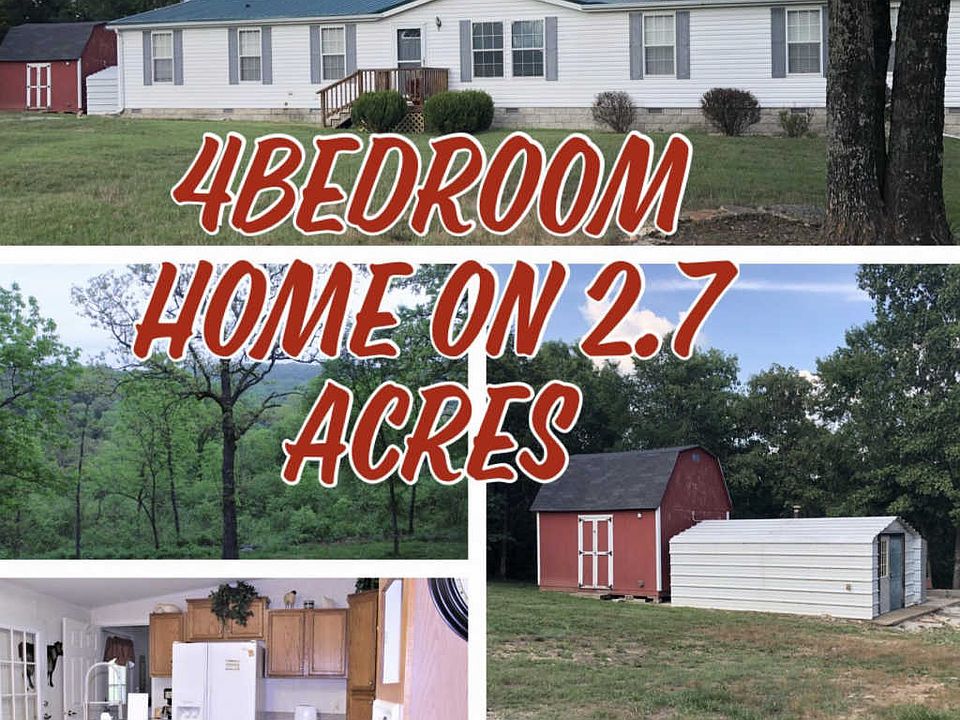 Quiet Country Living in this beautiful Ozarks home! Enjoy a pristine mountain view from a large covered back deck. So quiet and serene. This home offers 4 bedrooms including a master suite with a sitting area and an enormous walk in closet. 2 living areas will give you plenty of space to relax. One living room has a fireplace that will be nice and cozy come wintertime. The kitchen is well equipped and comes with all appliances. Just off the kitchen is a laundry room with a pantry to stock until your heart's content. Plenty of storage outside with 2 large storage buildings and situated on 2.7 acres. Lots of home for your money here!