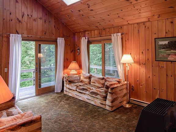Four bedroom two bathroom contemporary in desirable neighborhood of Quechee Lakes. This home has been in the same family since construction in 1982. First time on market in 38 years! Owners' children and grandchildren have all enjoyed this home and the Quechee Lakes lifestyle. Now, it is time for new owners! First floor includes open kitchen, dining and living. Living has cathedral ceiling with lots of glass and light! Large heated enclosed sunroom/porch and main bedroom, also on first floor. Wrap around deck. Two beds and full bath on 2nd floor. Additional bedroom and family room in lower level. Woodstoves located in lower level and in main floor living room. 1997 constructed two car detached garage near entrance to main level on upper drive. This home has amazing potential and will be greatly improved with some flooring, other upgrades and cosmetic enhancements. Perfectly habitable as is! Priced well BELOW assessment. Start your Quechee Lakes experience and build some equity as the second owner of this fun, interesting contemporary home located behind the ski hill and above the club. Don't miss it!