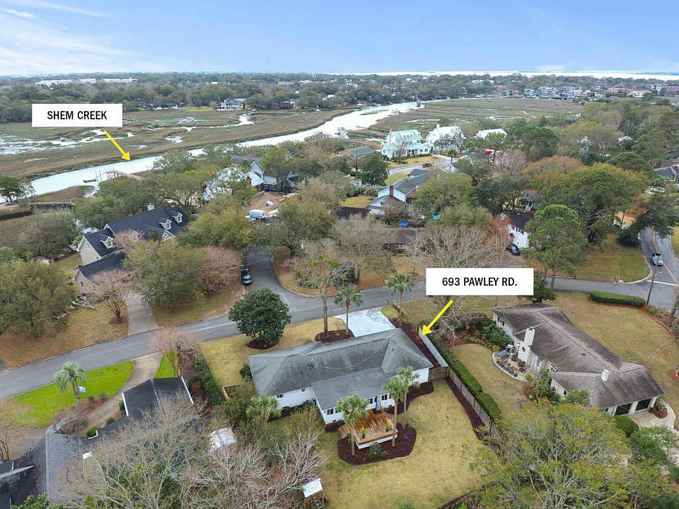 693 Pawley Road was fully renovated from the studs out in 2014. Roof was replaced in 2014 and a new HVAC system was installed in 2019. An open floor plan, generous sunroom, and large back deck with spacious backyard give this home tons of flexibility for any buyer. Tucked on a side street in beautiful Cooper Estates, this home is only a short bike ride or walk to all the restaurants and shops of Shem Creek Landing. You're in the heart of Mount Pleasant with Trader Joe's and Whole Foods 1.5 miles away. The community features a private amenity island with it's own boat ramp into Shem Creek, playground, and covered pavilion. This home is zoned for award-winning Mount Pleasant schools.