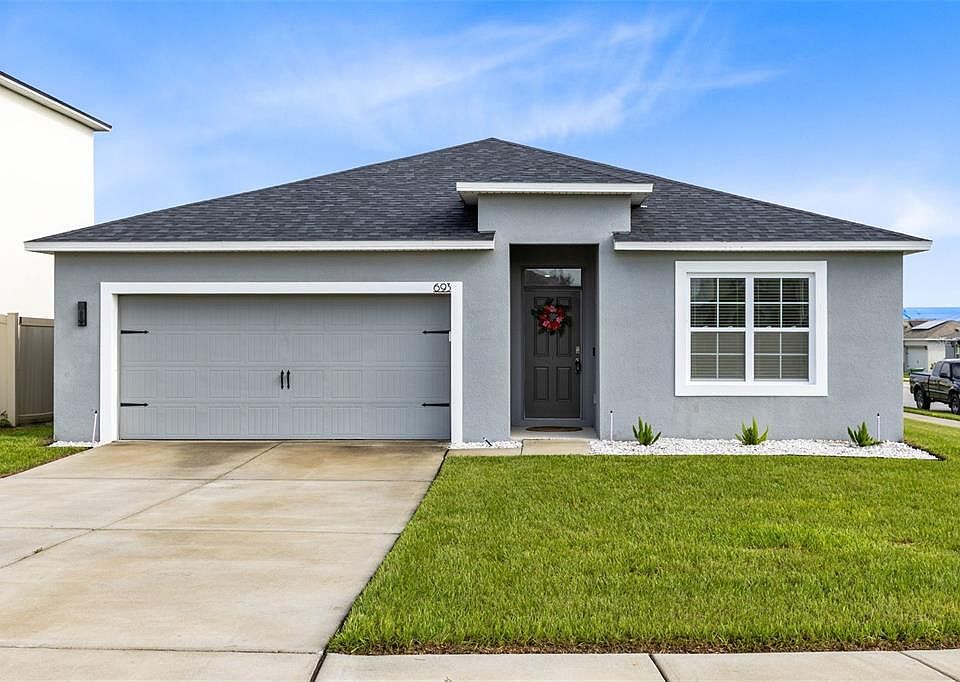 **Assumable 2.99% interest rate** Beautiful 4-Bedroom Home in Winter Haven! Welcome to 693 Peyton Brooke Way, a meticulously maintained 4-bedroom, 2-bathroom home with 1,867 square feet of living space, all on one level. Built in 2021, this home features the builder's most popular floor plan, the Cali, offering a split floor plan for added privacy and functionality. Situated on a desirable corner lot, this property boasts a brand-new roof and gorgeous wood-like laminate flooring installed throughout, adding both style and durability. Located in a fantastic community right between Tampa and Orlando, you're just 30 minutes from the magic of Disney World! Enjoy community amenities such as a pool and scenic walking areas, perfect for relaxation and recreation. Don't miss out on this stunning move-in ready home in a prime location! Schedule your tour today!