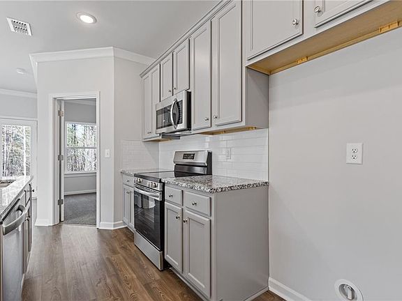 Welcome to this stunning Braydon floor plan, a 4-bedroom home where elegance meets comfort on a generous private lot surrounded by peaceful scenery. Step inside to a grand two-story foyer that sets the stage for crown molding and fine details throughout. The spacious kitchen features 42" painted cabinets and granite countertops that extend into all the bathrooms, and it seamlessly overlooks the morning room and family room to create an open and inviting space perfect for entertaining or everyday living. The primary suite on the main level offers a private retreat with a spa-like bath, while a flex room adds versatility for a home office, gym, or playroom. Upstairs, three spacious bedrooms provide comfort and function, making this home the ideal balance of luxury and practicality. Whether you are relaxing indoors or enjoying the serenity of your backyard, the Braydon at High Shoals offers the lifestyle you have been waiting for. Schedule your private tour today.
