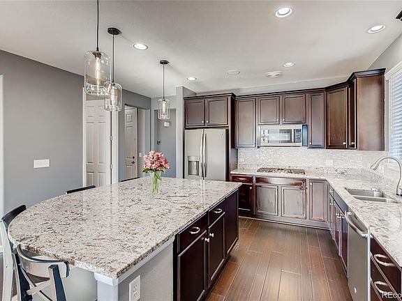 Welcome Home to Castlewood Ranch at it's finest! This 5bed/4bath home with a separate main floor office space and finished basement will not disappoint. Kitchen features granite countertops, large kitchen island, walk in pantry, soft close drawers, double oven, a microwave/convection oven combo, wood floors, and plenty of room to eat in and entertain. Cozy up next to the gas fireplace in the living room, featuring an attached bonus room to use as you wish! Main floor office space with doors for all your work from home or remove learning needs. Upstairs you'll find 4 large bedrooms, 2 full baths, convenient 2nd floor laundry, plus a loft! The large master retreat is complete with 2 walk in closets, a 5 piece master bath with granite countertops, double sinks, soaking tub, and shower. Walk down into the beautifully finished basement complete with it's own theatre room and projection screen. Just add your favorite theatre seating and you're set to host the best movie nights! Basement also features another bedroom, beautifully finished bathroom with a shower, and additional bonus room waiting for your finishing touches! Seller was going to add a bar area, but left it for your design touches. Large backyard area with beautiful deck for our perfect Colorado weather. Other notable features of this house include 2 HVAC systems (basement and 2nd floor) sure to keep you comfortable all year long in winter and summer! Tons of closet/storage space, CAT 6 network throughout the house, in ceiling speakers in kitchen and master bedroom. This house has all of the upgrades and is ready for it's new owner!