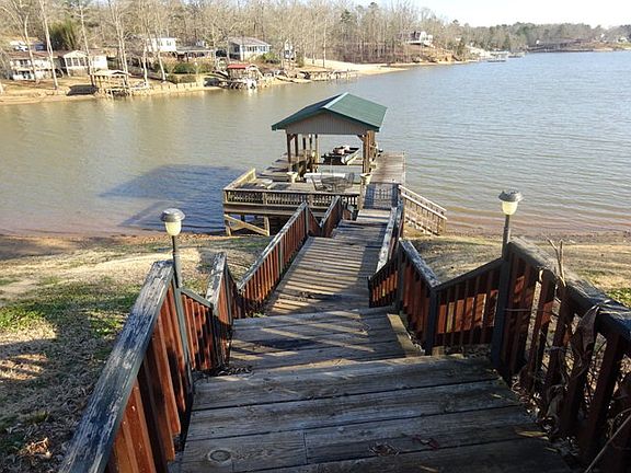 Enjoy life on Lake Greenwood. Beautiful custom built home on spectacular point lot - year round water. Open floor plan with 9' ceilings in living room. Lots of windows to enjoy the scenic beauty of the lake.. Large separate dining room would also function as office/study or exercise room. Wrap around deck has gorgeous views of the lake, wonderful for entertaining. Master bedroom and bath on main level with large walk in closet. Basement has finished family room with the other half being workshop area and storage area. Relax with friends while enjoying your outside patio fireplace. You deserve the pleasures of living on the Lake!