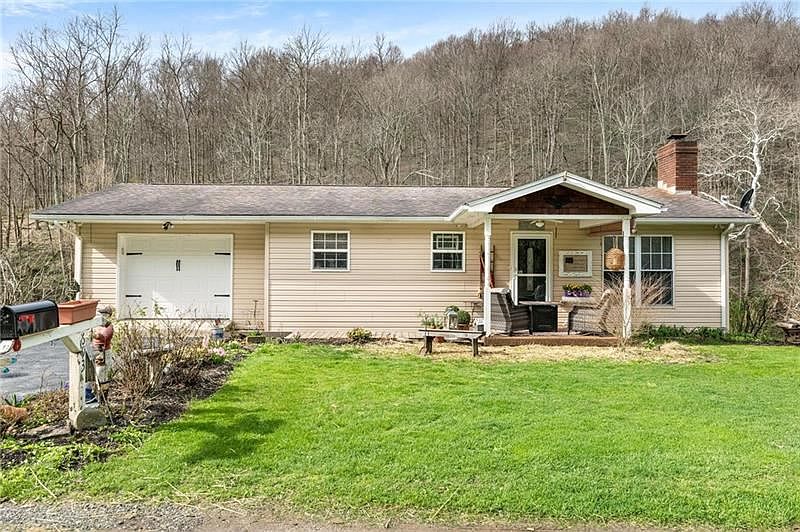 Tranquility and comfort! This captivating 2-bedroom, 2-bathroom ranch is perfectly situated on 1.5 acres in New Freeport. 693 Toms Run Road is nestled on a pleasant street lined with a creek on one side and (non-active) railroad tracks on the other, making for the ultimate in privacy! The interior offers a welcoming feeling as soon as you step into the living room. Head to the kitchen which features marvelous cabinet space & beautiful exposed brick backsplash. With easy access between the kitchen and living room, entertaining will be a breeze! The primary bedroom is both calming for winding down at night & waking up refreshed each morning. Bedroom two is ready for your decorative touch! The main floor is complete with an updated full bathroom. If that's not enough, host the next party in your HUGE basement where you can snuggle up by the wood stove. Outdoor wood/coal burner heats home (in addition to baseboard heat). Imagine the next family reunion or cookout at this fantastic spot!