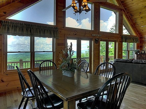 TAKE YOUR BREATH AWAY MTN VIEWS OF TN & NC! Relax in the evening and watch the sunset from expansive decks. Perfect for outdoor entertainment & dining w/exterior fireplace, hot tub and comfortable Adirondack chairs. Open floorplan features full wall of windows to enjoy the view. 3 large bedrooms/ 3 full baths, family room has pool table, foosball & darts. Situated on 2.25 Acres for Privacy yet so close to all the entertainment North GA offers. Beautifully decorated, offered FULLY FURNISHED, EXCELLENT RENTAL HISTORY. EASY drive on paved roads.