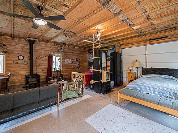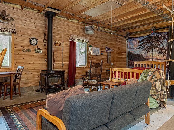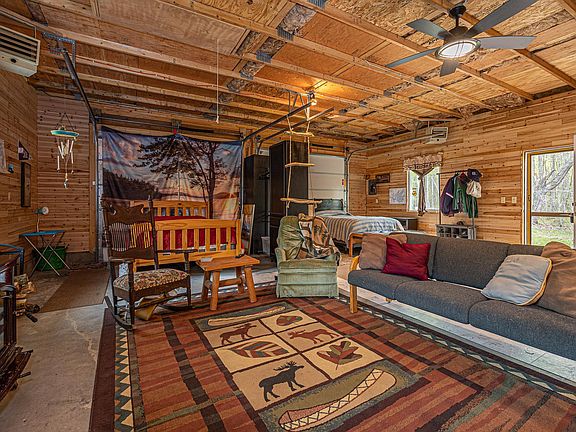 Whether you enjoy the summer fun of ATV trails, boating/fishing, golfing and hunting or winter activities of snowmobiling, skiing and ice fishing, this property is an outdoorsman’s dream. Ensconced in 5+ acres of private woods, rests this cozy 3/4 bath/studio cabin. Finished with knotty pine, the open floor plan has a kitchen with island seating, as well as room for a dining table. The sitting area is outfitted with a wood burning fireplace and built-in fan that generously heats the entire home. A toasty warm feeling after a Fall day of hunting or Spring day of fishing is guaranteed. The cement patio is a great place to grill and the large yard is welcoming to family fun. There’s storage above the studio and even more space in the detached 2 car garage. The no-maintenance cement board siding makes life easier. Set in northern Minnesota’s beautiful lake country, and within 20 miles of 3 state forests, this is a dream for anyone who wants to experience nature in their own personal way!