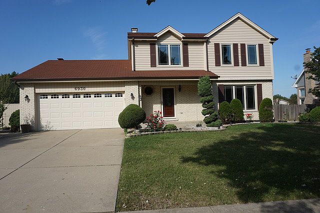 Very Nice 3/4 Bedroom home freshly painted. New in 2014 is the siding, windows, front door with storm & back door, garage door, and water heater. Hardwood flooring, carpeted bedrooms, Kitchen and baths tiled flooring. Full wall fireplace in family room. Basement with Bar and a Den with closet that can be used as bedroom. Large patio with storage and fenced yard.