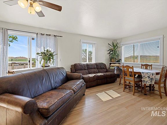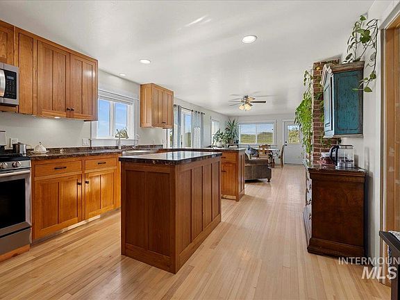 **5.85 ACRES**5 ACRES FLOOD IRRIGATION**WATER SHARES/RIGHTS**30'X42' SHOP W/ OIL CHANGING BAY**NEWLY REMODELED HOME**MATURE TREES**2 WELLS**CURRENT AGRICULTURAL EXEMPTION (LOWER PROPERTY TAXES)** WELCOME to your private slice of Heaven! 360-degree views w/ no close neighbors. Property backs up to BLM land, the Owyhee Mtns, and is only 5 min from Jump Creek Nat'l Park. Home recently remodeled! Charming propane fireplace. Beautiful new kitchen w/ marble countertops & custom cherry cabinets. Bathroom w/ heated floors. Oak and clear fir flooring in kitchen, living room, & 2 bedrooms. 2 decks & a lovely 600 SF flagstone patio w/ firepit for outdoor entertaining. Full basement w/ outside entrance, ready for your imagination to double the sq.ft. New 30x42 shop with 6' slab floor. Tack room outbuilding. 8'x14' garden shed. Generous pasture with covered livestock stalls & corrals. Chicken coop, flood irrigation, RV parking, lg garden area, numerous fruit/shade trees, and fully fenced. Truly a perfect homestead!! BTVA