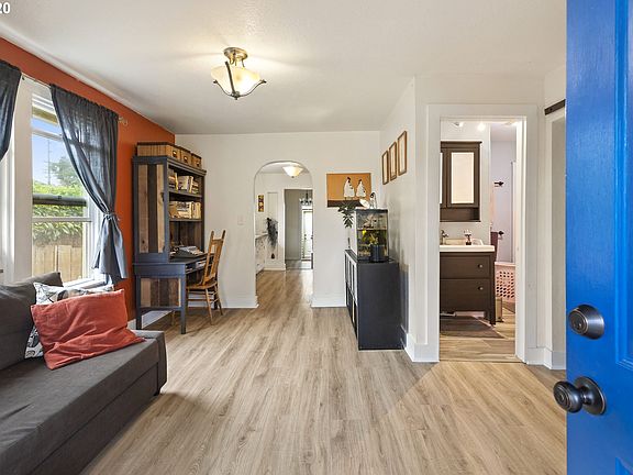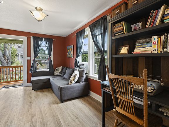 Adorable 1919 St John's Bungalow! Updated 2 Bedroom, 1 Bath w/Bonus room for little one or use as office space. "Office" in storage shed for privacy. So cute! Bonus loft above garage for office, art studio, guests, or playroom. Raised Bed Gardens, Patio, Chicken Coop. Expanded front porch~New privacy fence~Pergo Outlast vinyl waterproof floors. Appliances stay! Induction cooktop/Convection Oven. Washer/Dryer. Tankless Water Heater. Walk to stores, shops, restaurants and more! [Home Energy Score = 2. HES Report at https://rpt.greenbuildingregistry.com/hes/OR10186365]
