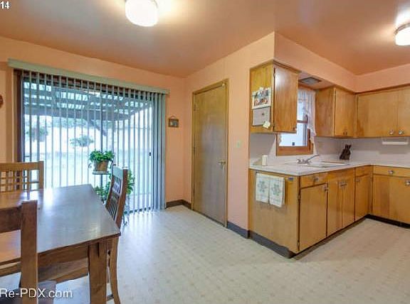 Classic Mid century Ranch~Nice home featuring original cabinetry and period details. Spacious floor plan with 3 bedrooms, 1 bath, and 2 fireplaces. The partially finished full basement has a family room, laundry room, storage and plenty of room for additional living space. Hardwood floors under carpet, A/C, & attached garage. Nice fenced yard w/sprinklers & covered patio. Blocks to New Seasons, Max,and all amenities. Bike score 95.