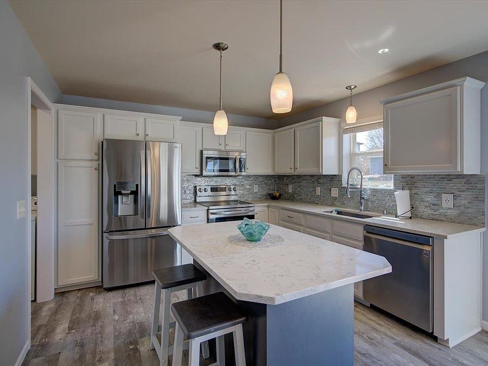 This beautiful home in Holland Fields is close to Cradle Park, Splash Pad, and has everything you could want! The main level has open concept, vaulted ceilings, fireplace, 3 bdrms, 2 full baths, living room, and kitchen. The spacious kitchen has quartz counters, an island, pantry, new appliances, and lots of storage. The primary bdrm has an on-suite w/ large walk-in closet. The cozy lower level has lots of natural light, fireplace, full bar, family room, bonus room, and full bath. Lower Level has tons of storage and a second space currently utilized as a gym (16x13). This home is packed with updates! Roof, mechanicals, appliances, garage door, are all new within the past 5 years! Enjoy the nice weather on the large deck, or cool nights next to the fire pit.