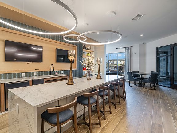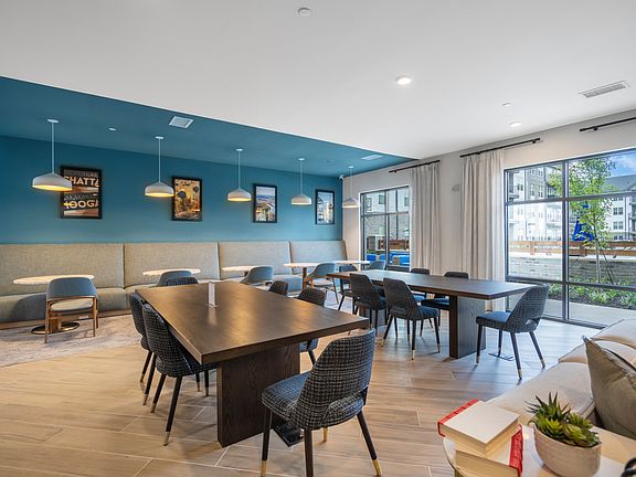 • Exterior features: 9 ft Ceilings, Barbecue, Bicycle storage, Carpeted Bedrooms, Clubroom, EV Charging Stations, Game Room, LVT Flooring in Common Areas, Mail Room, Parcel Room, Pet Park, Private Garages & Storage, Quartz Countertops, Stainless Steel General Electric Appliances