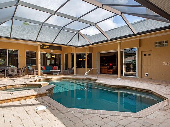 - Pool features: Child Safety Fence, Gunite, Heated, In Ground, Screen Enclosure, Solar Heat, Outside Bath Access, Tile