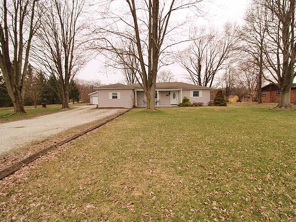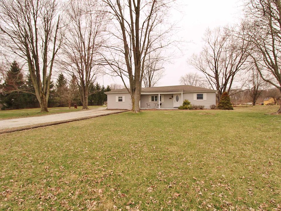 Spacious ranch at the edge of town. Large living room, updated kitchen, formal dining room or could be used as a family room. Large bedrooms, en suite at one end of the house. 2 full baths and 1 half bath. Finished 24x48 detached garage with heat. Great location in the Mississinewa area. Nice heated Florida room at the rear of the house, fenced yard.