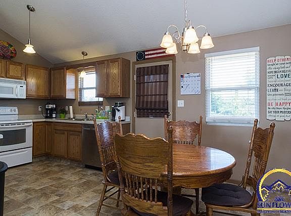 Beautiful and well maintained home, fresh paint inside and out, newly stained wood fence, new carpet, new toilets, new light fixtures, wired for alarm system, deep lot backs into woods and also adjacent to Topeka's newest water park. Shows well!
