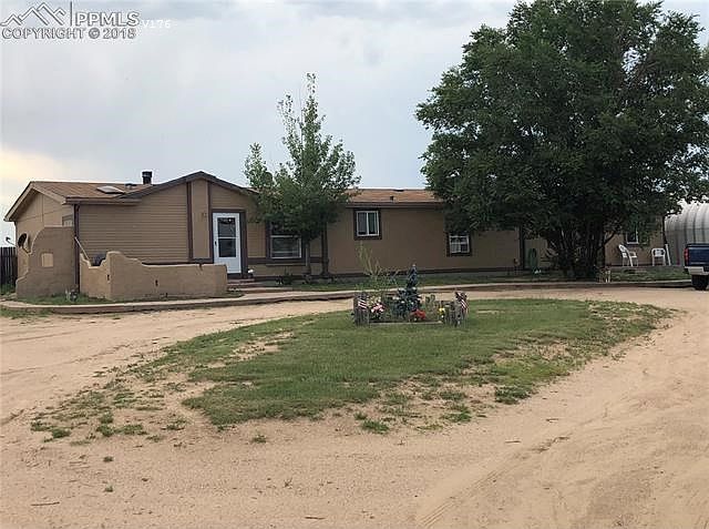 This 4 bedroom, 3 bath, 5 car garage home with quality finishes throughout, this is quliving, bright and airy main level living, open floor plan, this home is loaded with personality. Large open walk through kitchen with 2 pantries and separate dining, all the appliances stay in the kitchen. Large living room with efficient woodburning stove and built-in large bookshelves, window A/C units in each room, master bedroom has oval relaxing jetted tub and French doors, this is a 5 piece bath. Laundry/mud room. This home has a mother-in-law bedroom with extras! Skylights, old fashion wood burning stove that will keep you warm and cozy while you watch the included big screen TV and projector to watch your movies, it also has baseboard heat, auxiliary 7 gal hot water tank, it also has its own bath with walk-in closet, private entry and walk-out to the privacy fenced hot tub and pool. This home sits on 5.75 fenced acres for horses. The 24X16 pole barn has feedlot, tack room and corral. The included tractor with brush hog, blade and mower is great for cutting grass. Greenhouse to grow veggies and flowers. 48X24X10 Steel Master garage with doors, over 1,300 sqft of space. Storage shed with dog run, deep metal frame pool. Stunning views of Pikes Peak and the Front Range. 800 ft gated driveway that is tree lined up to the house, with circular drive. The school bus comes to front gate to pick up the kids. The neighborhood is quiet and the neighbors are friendly. 30 minutes to Colorado Springs, 40 minutes to FT Carson, 20 minutes to Schriever AFB.Peyton and Falcon for shopping. Space for gardens, and projects. Very nice home plus acreage with no HOA! The property is completely fenced. About 2 years worth of wood to fuel the stoves is included. A must see property!