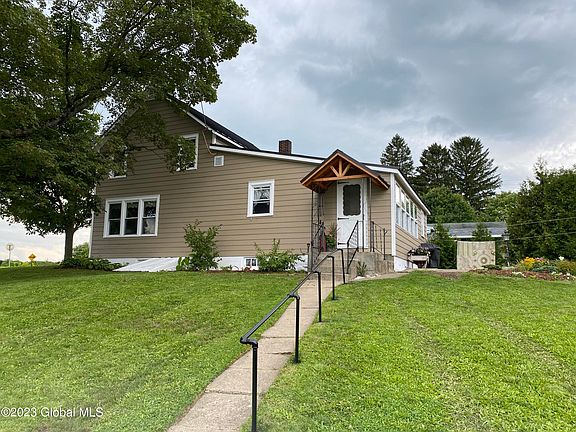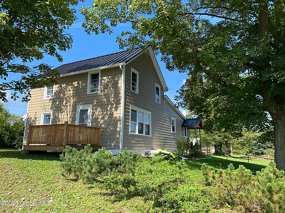 This charming two-story country house sits on a beautifully landscaped plot of 2 acres. It's exterior showcases new insulation & siding and a new standing-seam metal roof. gutters and new deck at the front entrance. The cozy interior boasts two bedrooms upstairs, a newly renovated and expanded kitchen featuring stunning hickory cabinets that bring a touch of rustic elegance and new flooring. A large semi-circular driveway allows for plenty of parking. The detached workshop and added horse-stall, which was previously a garage, and the new large storage shed add a versatile space for hobbies or storage. With its serene countryside setting and modern updates, this home is a perfect blend of comfort and natural beauty.