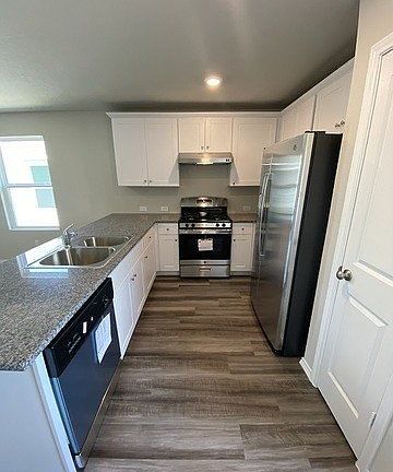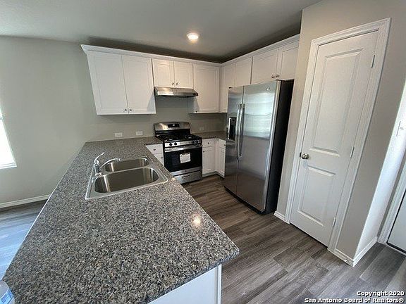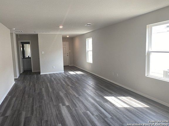 3 bedroom 2 bath home features an open floor plan. wood-look vinyl flooring in living and wet areas. carpet in bedrooms. Kitchen features granite countertops, stainless steel appliances including refrigerator. Split bedroom arrangement with Main bedroom separate. Short drive from Randolph, Brooks AFB, Ft Sam Houston, SAMMC Hospital