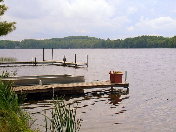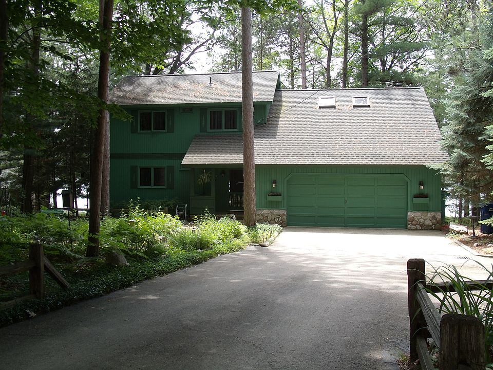Thayer Lake; 80' x 210' ; Nestled among mature pines and hardwoods on a quiet, spring fed lake, this 3+ bedroom 2 bath home is the epitome of " A North Woods Hideaway on the Lake". A welcoming fireplace in the living rm, large family room, covered deck overlooking the lake, spacious bunk/project room upstairs, attached garage. These are but a few of the features that will make this an exceptional place for vacation or year round home. Natural landscaping adds charm - pathway leading to water's edge.