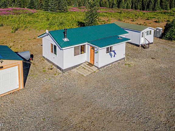 Nice little turn key home, and a furnished rental cabin! Views of the Caribou Hills and distant view of Kenai Mountain range! Open, level lot with no wetland or CC&Rs- would be well suited for horse property, animals or high tunnels. Kinetico water filter, RO System, new heating system. 16x10 Shed for storage, large U-Shaped driveway perfect for campers, trailers. Currants, raspberries, strawberry plants and raised beds established. Home and cabin come completely furnished with the exception of personal items. Close to world class fishing and hunting, short drive to the town of Homer. Seller is licensed Realtor in state of Alaska.