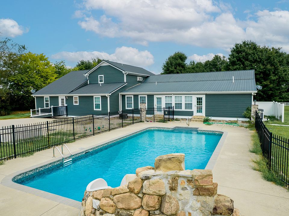 Country living meets endless possibilities on over five flat, fenced acres! The entire home feels like a getaway with room for every activity inside and out, including the sparkling in-ground pool with a 10-foot deep end, rock formation, and slide that serves as the showpiece of the backyard retreat. This five-bedroom estate features two kitchens, abundant living space, and two primary suites—one on the main level and one upstairs. The property also includes an 875 sq ft guest apartment with its own electric meter. Perfectly designed for multigenerational living, pursuing hobbies, hosting guests, or income potential, this home offers flexibility for every need. A five-stall horse stable provides space for horses or added storage, while the open land is ideal for gardening, livestock, or outdoor recreation. Recent updates, climate-controlled storage, and unrestricted land add value and freedom, while ADA-friendly entrances, ramp, wide hallways, and a handicap-accessible bath provide everyday ease. A tornado-safe room adds peace of mind, and with pricing below appraisal and convenient access to Springfield and I-65, this rare property truly has it all. Whether you’re entertaining by the pool, hosting family in the guest apartment, or enjoying the wide-open land, this property offers comfort, space, and opportunity.