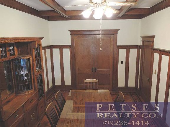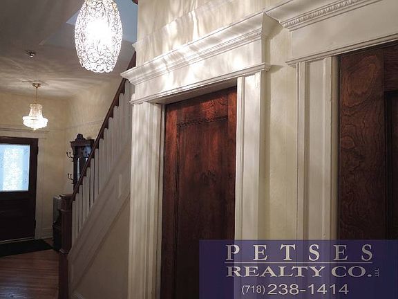 One Family, Attached Limestone, 4-bedroom home. Traditional, formal dining, living and sitting rooms main floor layout. Period original circa 1899 and impeccably preserved hardwood detail and built-in cabinetry circa 1899 throughout the home including parquet wood floors with Greek key and other ornate inlay borders, coffered ceiling, formal paneling, pocket doors and moldings among other features. Renovated kitchen includes linear glass mosaic backsplashes, fabricated stone counters wood cabinetry, modern hardware, stainless steel appliances including dishwasher and over-the-range microwave. Fully renovated hotel-styled, stone master bathroom with complex fixtures including rainfall showerhead and jacuzzi tub with fixed glass partition. Renovated half-bathroom on first floor. Skylight with original stain glass cover fills the upper floor with light. High ceilings. Rear deck leading to the serene private, fenced with pavers rear yard. New Anderson windows. Short walk to all forms of public transport including express bus and new ferry service to lower Manhattan.