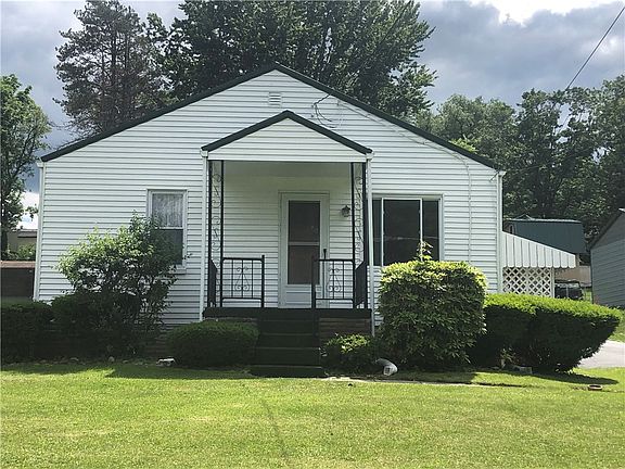 Implement your style and add your personal touch to this solid 2-bedroom, 1-bath classic starter home with great bones. The spacious backyard will be the hub to great entertaining or simple relaxing. Think summer BBQs, smores, outdoor movies, or chillaxing with a good book. A large picture window keeps the eat-in kitchen bright and allows you to keep an eye on the outdoor activities. Natural light fills the cozy living room that has direct access to the front porch. The bathroom in centered between each bedroom -- one in the front of the home and one in the rear. Original hardwood floors underneath the carpet. Laundry area/hook-up in basement includes large, double basin utility sink. One car detached garage with additional off-street parking utilizing the paved driveway. Two large sheds for added storage. New metal roof on house and garage (fall of 2021).