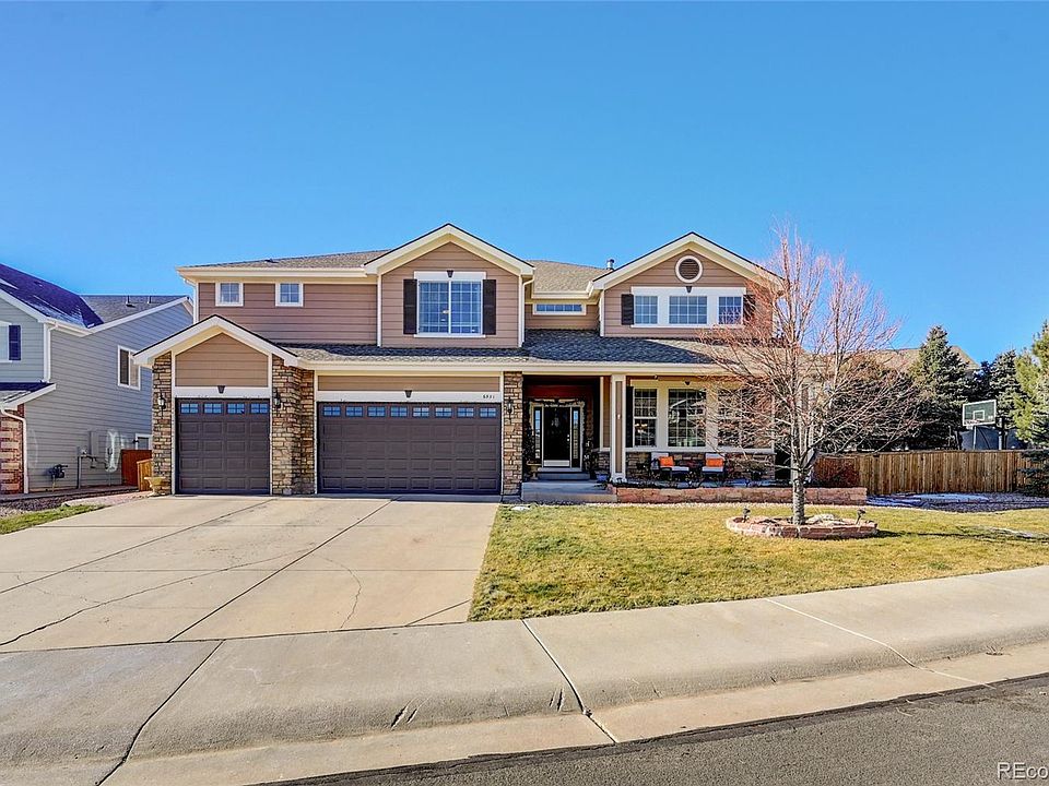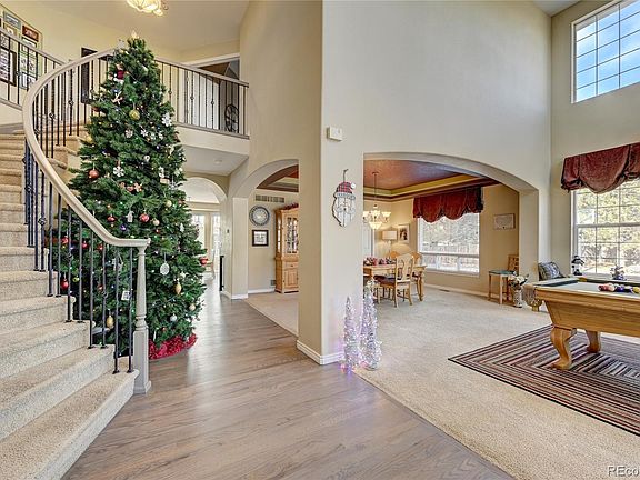Presenting this exquisite Single-Family property situated in the highly desirable Sapphire Pointe/Maher Ranch community of Castle Rock. Boasting 4 bedrooms, 4 full bathrooms, 1 half bathroom, & a generous 6,570 square feet of living space, this home offers the perfect blend of elegance & functionality. As you arrive at the property, you'll immediately notice the well-maintained front facade, featuring a 3-car garage & a meticulously manicured front yard. Step inside & be greeted by the grand entrance foyer, complete with high ceilings, hardwood flooring, & fireplace, setting the tone for the rest of the home. The kitchen is a chef's dream, equipped with top-of-the-line stainless steel appliances, a spacious kitchen island, & beautiful stone countertops. The adjacent dining area is perfect for hosting formal dinners or casual gatherings, with a chandelier adding a touch of sophistication to the space. Relax & unwind in the cozy family room, featuring a fireplace & a ceiling fan for added comfort. The main living areas are filled with an abundance of natural light, thanks to strategically placed windows that showcase the stunning views of the surrounding landscape. The primary bedroom suite is a true retreat, complete with a fireplace, New floors, & an ensuite bathroom that exudes luxury. Each remaining bedrooms are thoughtfully designed & offer ample closet space, ceiling fans, and its own full ensuite bathroom & abundance of natural light. Step outside to the patio area, where you can enjoy the Colorado sunshine & entertain guests. The fenced yard provides privacy & security, while the basketball court offers a space for recreational activities. Take in the breathtaking trails steps away from the property, a true testament to the beauty of the surrounding area. Don't miss out on the opportunity to own this exceptional property in the Sapphire Pointe/Maher Ranch community. Contact us today to schedule a private showing & experience the epitome of luxurious living.
