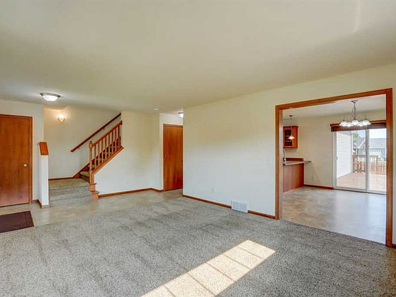 Houses are flying off the shelf in Heather Glen! This sweet one surely will too. Pretty kitchen with stainless appliances and crown molding on warm wood cabinets. Solid core interior doors feel so nice! Wood blinds throughout. Fenced yard (2 yr old wood privacy fence) and large deck - both freshly stained. Extra wide driveway, insulated garage w/six 20-amp circuits, ready for your workshop or hobbies. Unfinished basement is roughed-in for a full bath (also has extra outlets!)