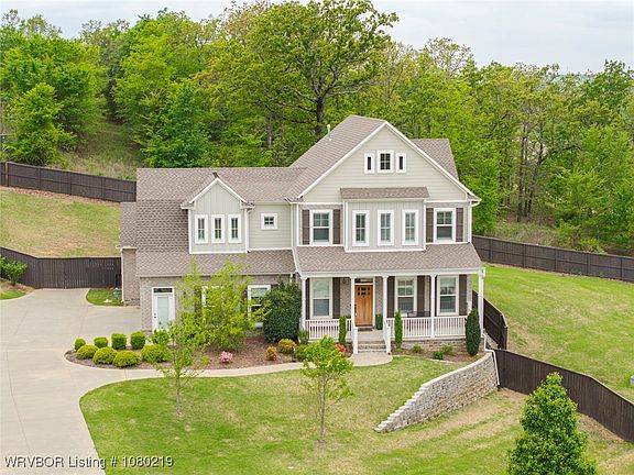 Fort Smith's Chaffee Crossing. Desirable 0.75+/- Acre Lot on Cul-de-sac Location. Backed to Dedicated Green space for Privacy. Inis Home has o bedrooms w/ Main Floor Primary bedroom, 4 Full baths, bonus Room, Office/Craft Room & a Finished Full Walk-Out Basement. Wide Covered Front Porch with the New Traditional Style Interior Combining Traditional and Modern Accents. Features & Amenities Include: Open Floor Plan with a Combined Dining/Kitchen/Living Area with Massive Quartz Island that Seats 5, a Culinary Dream Kitchen with Double Ovens, Gas Stove Top & Custom Shaker Cabinetry, Large Walk-In Pantry, Screened in Back Porch, Wide Plank Hardwood Flooring, Custom Built-Ins for Organization & Storage, Custom Designed Built-In Bunk Beds, Plantation Shutters, Wired for Surround Sound, Sprinkler System, Preferred 3 Car Side Entry Garage & Much More. Access to Walking/Running/Bike Trails from Backvard & Close Proximity to Ben Geren Park. Parrot Island Water Park & Janet Huckabee Nature Center.