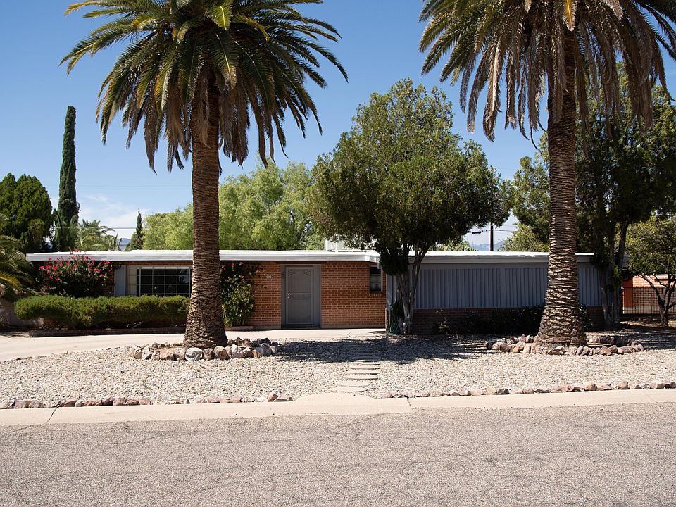 Tastefully updated Mid-Century Modern ranch home in the Terra Del Sol neighborhood. All new stainless steel kitchen appliances, quartz counter tops, and original hand-crafted mahogany cabinets. Bathrooms updated with new counters, tile, plumbing fixtures. Spacious living room with new plank flooring, dining room, and kitchen that opens to family room with wood-burning fireplace. New French doors lead out to fully enclosed Arizona Room featuring mahogany cabinetry could be a 4th bedroom or excellent home office. New carpet in two bedrooms, new plank flooring in master bedroom. Newly painted inside and out. New hot water heater. Beautiful private backyard with established plantings and large shade tree, mountain view, wired for spa. Owner/Agent Two garden sheds for added storage. Concrete drive large enough to accommodate RV.