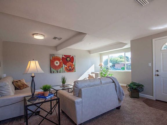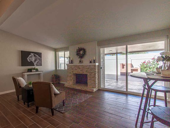 You will love this retro cool exterior & interior with today's finishes! Wonderful split bedroom floorplan with special features including a pool flex room,artist studio, kid's game room or even home office with private entrance! Open concept living spaces with living room/foyer area at front and kitchen/dining and family open to each other. Kitchen/Dining features granite countertops & stainless steel appliances, soft close drawers & doors. Owner's suite with private kitchenette, 2 closets plus private access to backyard area. Bedroom 2 is also ensuite with private bath. Vaulted ceilings in family room, gorgeous fireplace. Brand New HVAC, dual pane windows, doors, baseboards and more. Backyard with covered patio, BBQ area, block wall and fenced swimming pool, neat, easy care yard!