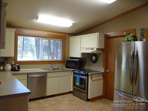 Opportunity for home ownership in Sisters. This sgl level home has been updated & improved over the past 4 yrs. The vaulted gr room w/newer flr coverings & windows incl's a pellet stove for extra warmth on a chilly day. The masterbed/priv bath is on east end of the home, 2 add'l BR's & guest bath on west side. New heat pump provides A/C, a suite of s/s appliances in kitchen & washer/dryer in the laundry room. Fully fenced back yard to keep kids & critter in (or out!). 1,440 sf on acre in Tollgate.