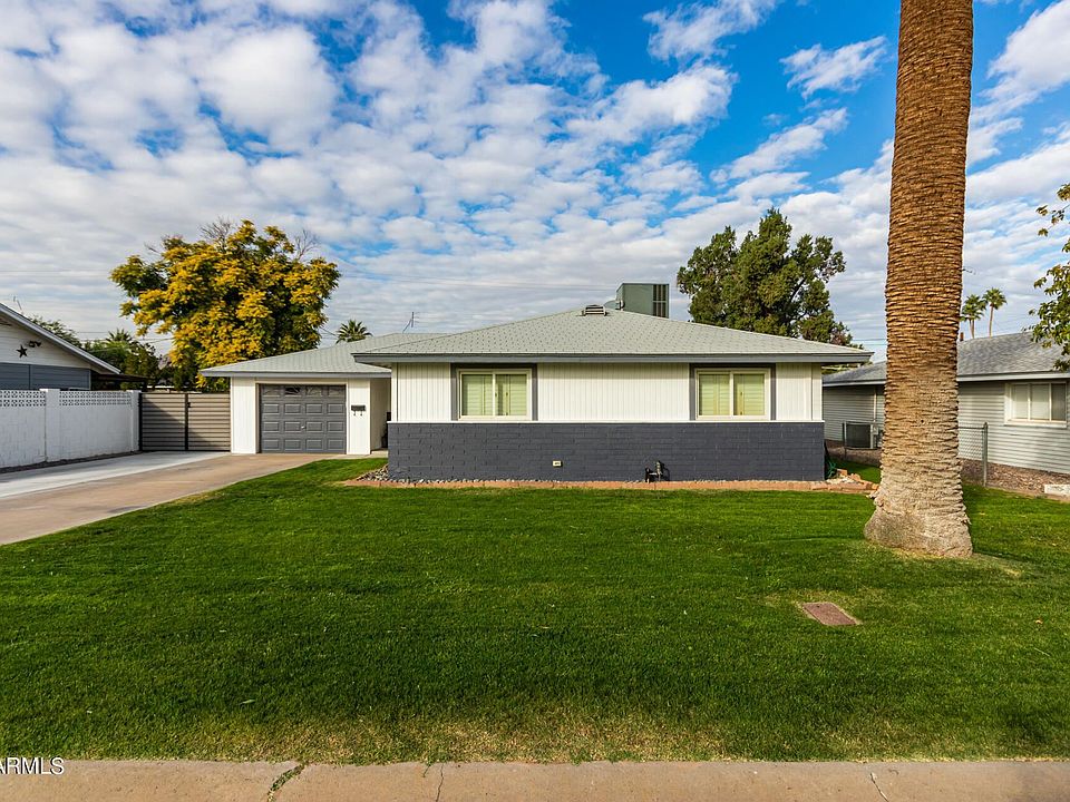 Absolutely fantastic home in an incredible Scottsdale neighborhood! No HOA, beautiful front and back yards, extended concrete driveway for plenty of parking! The inside features a beautiful kitchen that opens up the living/dining room great for enjoying time together or entertaining! You'll love the spacious pantry and laundry room just off the kitchen. Ceiling fans in all the bedrooms and great closets. The master bathroom has a double sink vanity and walk-in tiled shower. In the back yard the patio is oversized and an incredible place for relaxing or entertaining! Exterior shed has great extra space for outdoor furniture or yard equipment, and lots of extra space on the west side yard. Don't miss out - come by the open house!