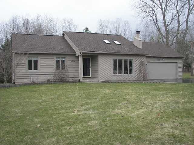 Great 3 bdrm 2.5 bath Ranch on private 3/4 acre lot. Open floor plan with cathedral ceiling & skylights. Large eat-in kitchen is open to Din Rm & Liv Rm areas with breakfast bar. Wood burning fireplace in living room. Master bedroom has walk-in closet, door to hall bath & sliding glass doors to rear deck. 1st floor laundry/powder room combo. Finished areas in basement could be offices or rec rooms with full bath. Large multi-tier deck in rear yard. Nice mature trees out front make for private yard. Move right in!