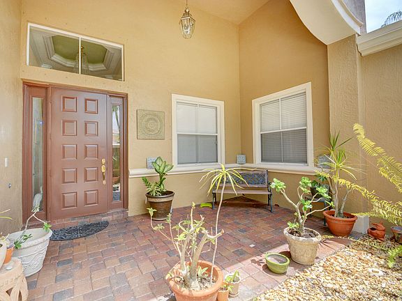5 bed & office lovely lake front home located in highly sought out Journey's End Community.Expansive lake view and exotic plants and fruit trees. High ceilings with crown molding throughout entire house and upgraded 4inch baseboards.Pre-wired stereo system with speakers for home theater with remote control in master bedroom, office and patio.Stainless steel appliances in kitchen and a brand new stove. Cherry wood cabinets.New cast iron pump system.Built in California closet in master bedroom Two AC units; one unit was changed in 2017 and other was changed in 2020.Brand new hanging lantern light fixture on front porch.All three bathrooms have been recently upgraded.Please note crystal chandeliers are not included with purchase of home. Granite counter top and tile floors throughout the hous Entire exterior house was freshly painted including garage and garage floor as well as two bedrooms inside in 2021. Driveway, front lanai and back porch was freshly sealed in 2021. All interior room doors were recently freshly painted.