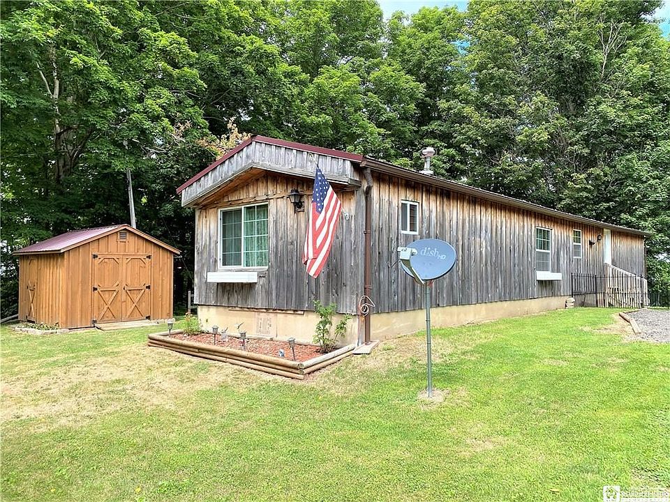 Affordable 3 bedroom. 1.5 bath home in a beautiful country setting. Property includes a newer detached 2-car garage and garden shed on 2 acres, mostly wooded, with a pretty little creek running through. You'll love the fantastic Lake Erie view when the leaves drop! Recently remodeled and updated, the house is much more spacious than it seems, with an open kitchen/dining/living area, one large bedroom with walk in closet and its own bath at one end of the house, and two bedrooms and a half-bath on the opposite end. Plumbing is in place for a tub/shower in the half-bath. Many improvements in the last few years!