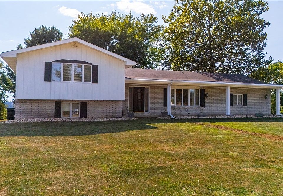Here's a hidden gem with a scenic panorama of the hills and valleys from the rear deck and back yard. Located on a hilltop and a single lane paved road in the Bridgeport school district, this 3 bedroom - three full bath home is situated on a 2.23 acre FLAT lot! If outside entertainment is your game. this home features a covered rear deck measuring 13' x 33' AND a 12' x 26' concrete patio with a firepit!