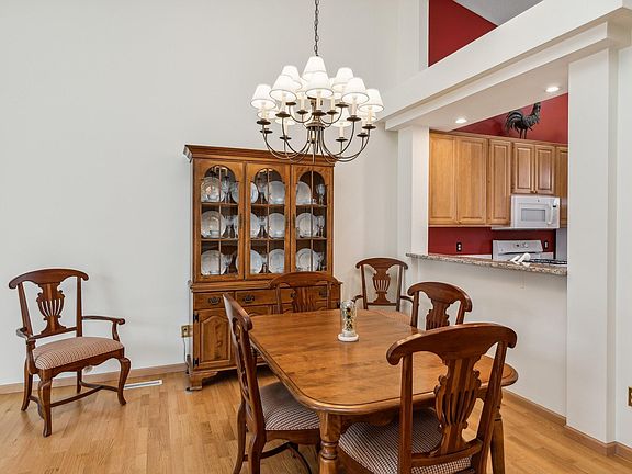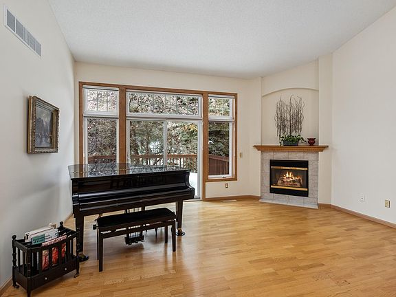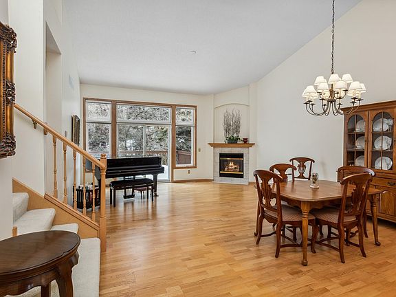 feature vaulted ceilings & beautiful hardwood floors with a gas fireplace for warmth & ambiance. The